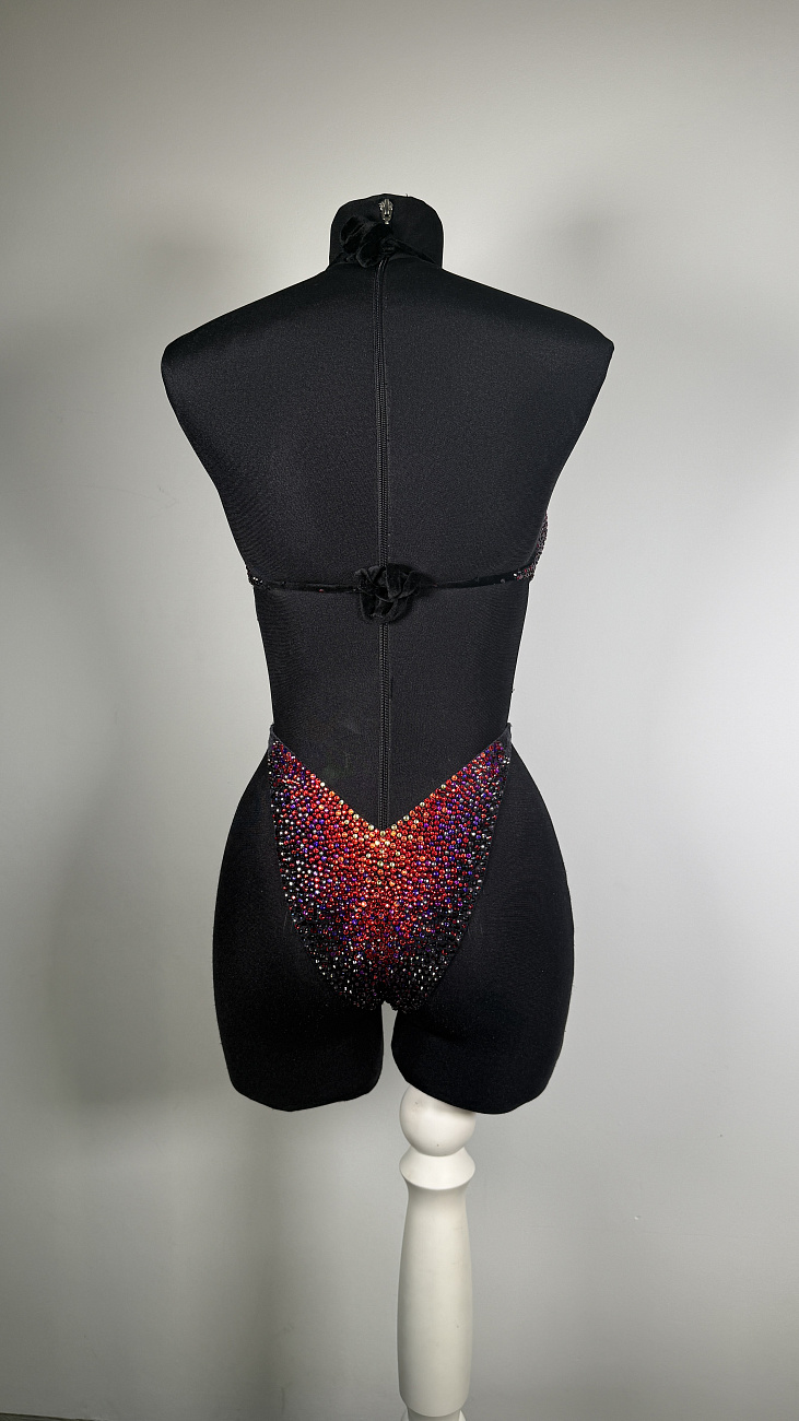 We sew the base using proven stretch fabrics — Italian velvet and approve the fit with you. Then the decoration begins: we use only reliable crystal-setting methods, hand-sewing large stones.