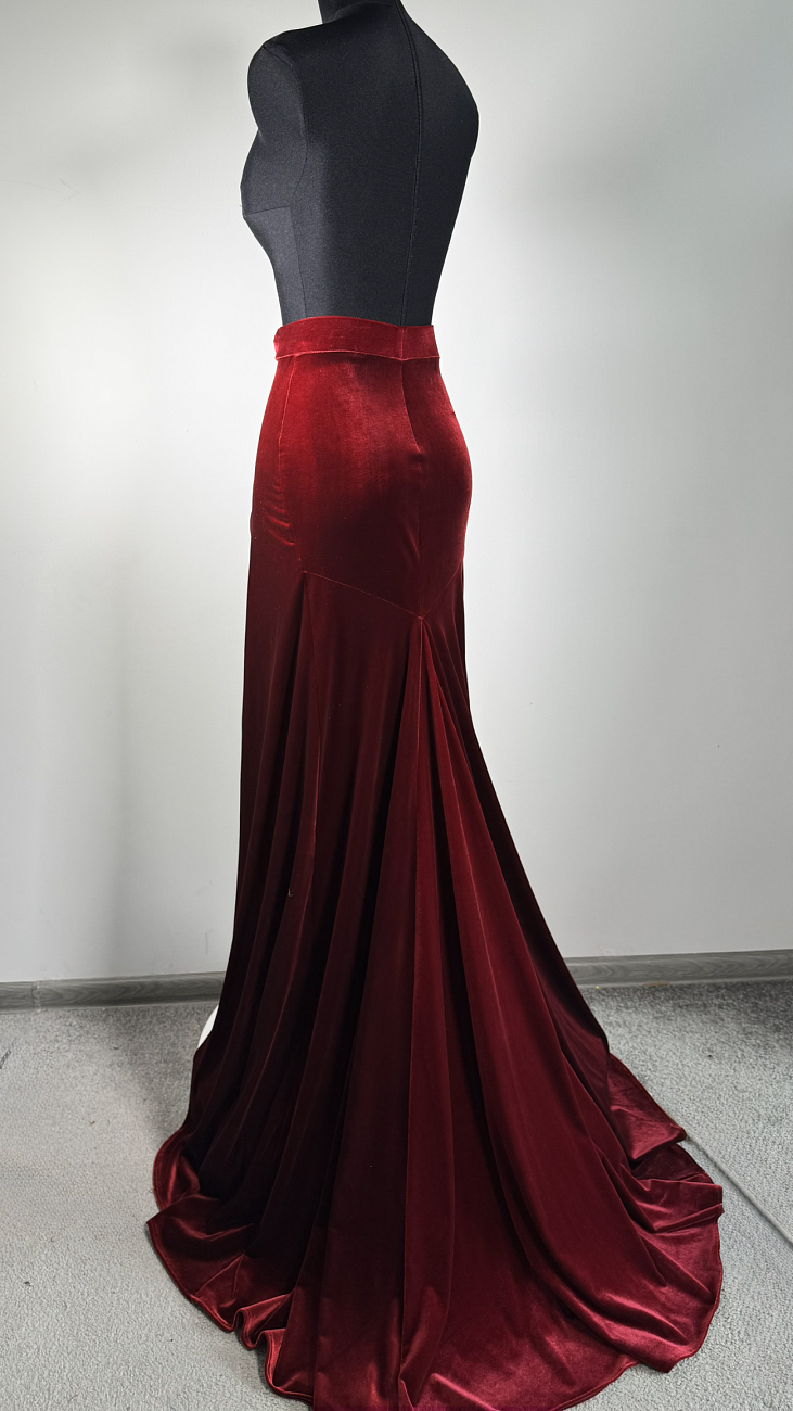 We sew the base using proven stretch fabrics — Italian velvet and approve the fit with you. Then the decoration begins: we use only reliable crystal-setting methods, hand-sewing large stones.